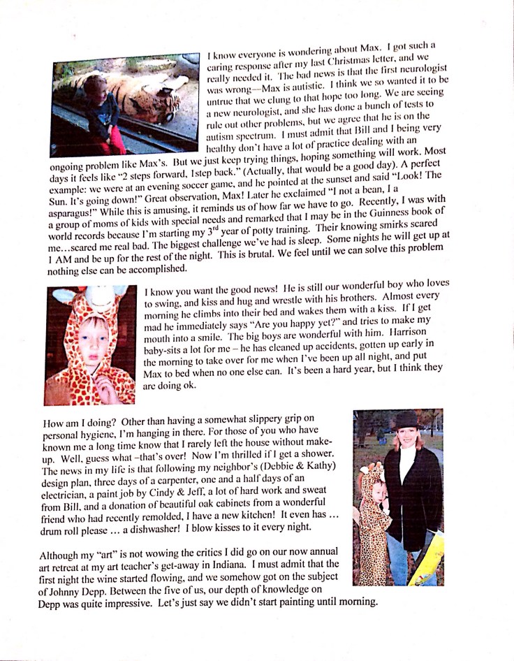 For a good 10 years I was Max’s person. I took care of most of the duties an autistic child requires. Bill contributed with the things he is really good at like research, getting funding and firing people. He was not in the “inner circle” -who was? Me and Max. Of course Bill would take the kids someplace so I could get a nap-but I was “numeral uno”-the “big dog” as my dad likes to say (about himself of course).